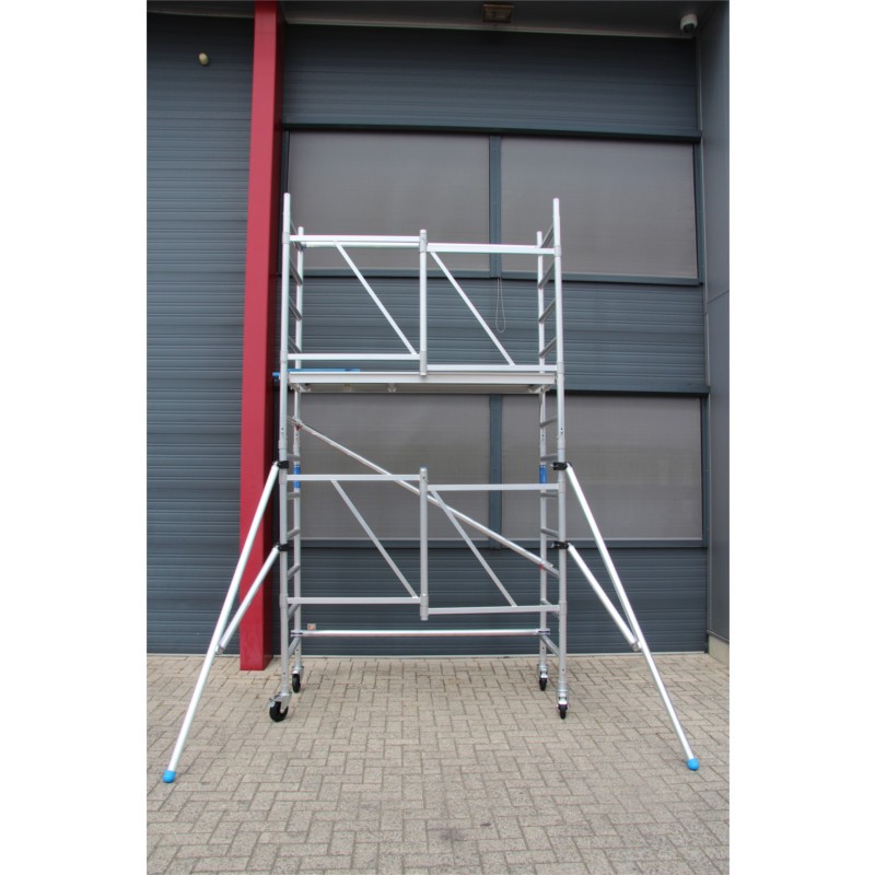 Der Unterschied zwischen dem Profi-Klappgerüst und dem Profi-Klappgerüst in der Premium- Ausführung ist die erweiterte Grundausstattung: Plattform mit Durchstieg bei Arbeitshöhe 3,00 m sowie 2 Stabilisatoren bei Arbeitshöhe: 3,85 m